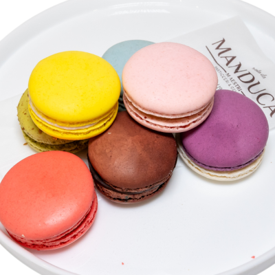Macaron realizzato secondo tradizione francese, disponibile nei seguenti gusti : pistacchio, crema al limone, cioccolato al latte, cioccolato fondente, caramello, fragola, ricotta e visciola